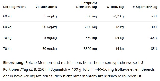 👉 Problem: Tierstudien, Isoflavonmengen weit über dem, was ein Mensch jemals aufnehmen könnte.